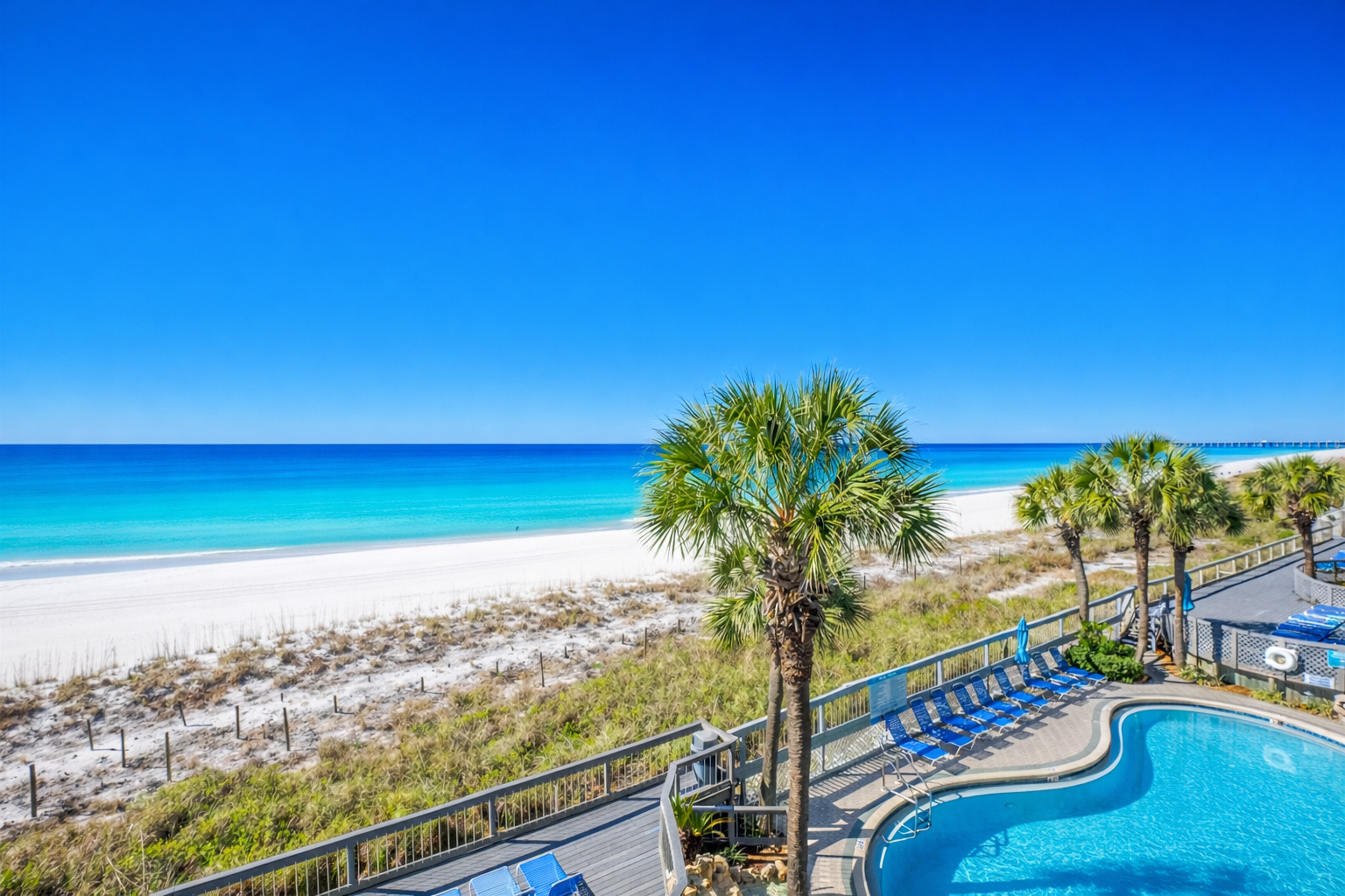 This 3 bedroom/3 bathroom condo features spacious living space that is complimented by a 119 sqft private balcony with seating to soak up breathtaking views of the emerald waters & sugary white sands of Panama City Beach.
